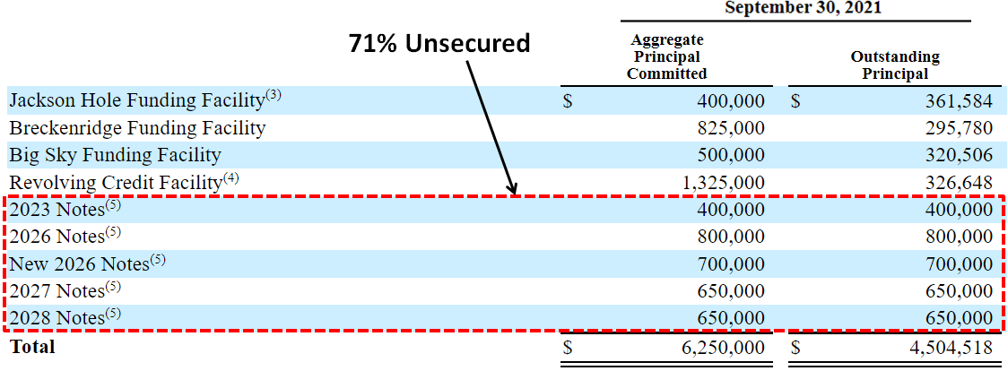 During Q3 2021, BXSL issued two unsecured bonds, a $650 million bond maturing in 2028 with an interest rate of 2.85% and a $650 million bond maturing in 2027 with an interest rate of 2.125%. As of September 30, 2021, 71% of all funded debt represents unsecured borrowings.