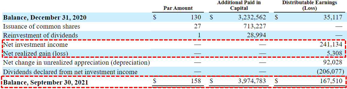 It should be pointed out that the company had undistributed earnings as of September 30, 2021, some of which was due to over-earning the dividend and realized gains which is a good sign. But of course, quite a bit was driven by unrealized gains which are also good but do not necessarily need to be paid out. I am guessing that the $0.65 per share of special dividends in 2022 is directly related to these amounts as it comes to almost $110 million and is likely being used to encourage previous shareholders to hold shares rather than sell.